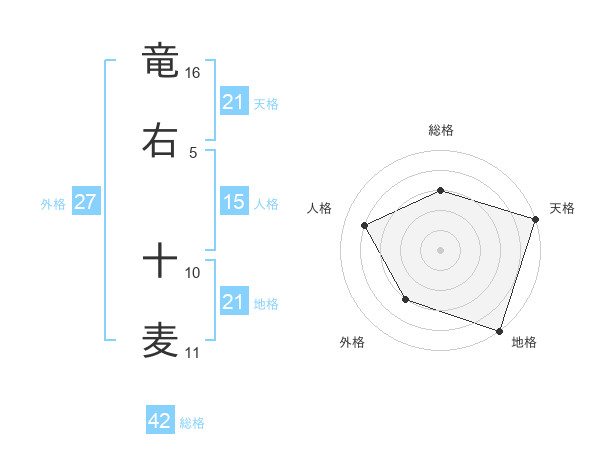 竜右 十麦さんを姓名の画数から五運を鑑定