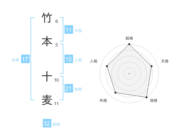 竹本 十麦さんの総格は32画の5点!