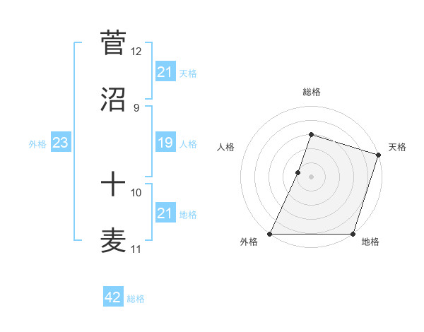 菅沼 十麦さんを姓名の画数から五運を鑑定