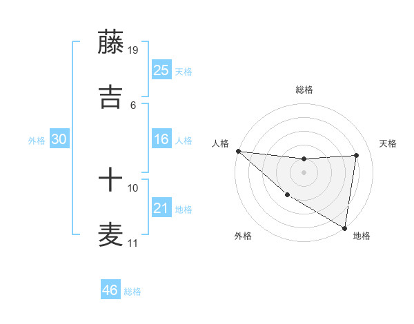 藤吉 十麦さんの総格は46画の1点!