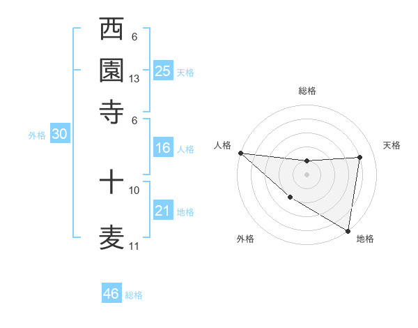 西園寺 十麦さんを姓名の画数から五運を鑑定