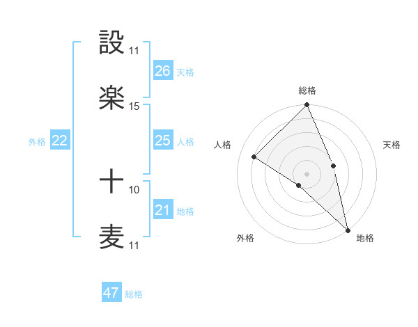 設楽 十麦さんを姓名の画数から五運を鑑定