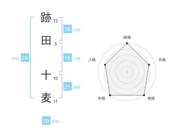 跡田 十麦さんを姓名の画数から五運を鑑定