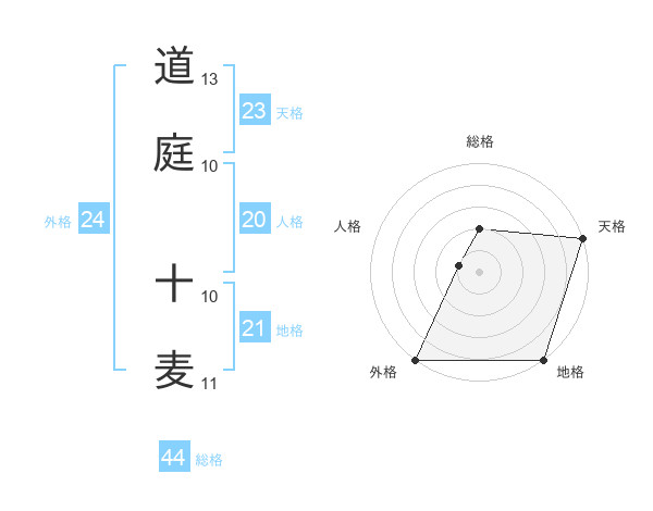 道庭 十麦さんを姓名の画数から五運を鑑定