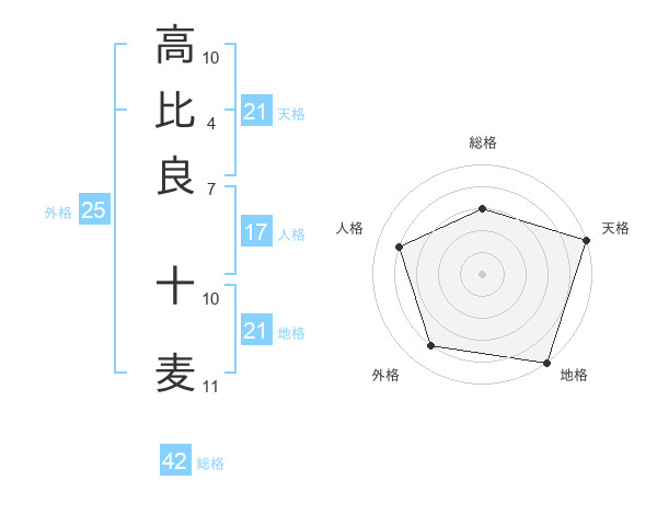 高比良 十麦さんの天格は21画の5点!