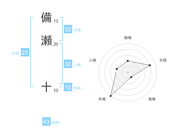 備瀬 十さんの外格は23画の5点!