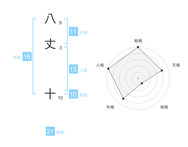 八丈 十さんの総格は21画の5点!