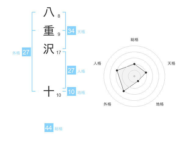 八重沢 十さんの総格は44画の2点!