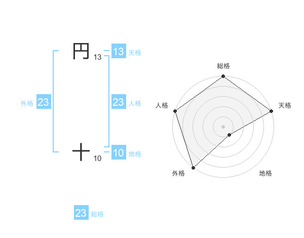 円 十さんの総格は23画の5点!