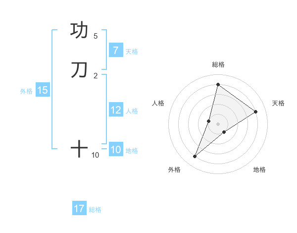 功刀 十さんの外格は15画の4点!