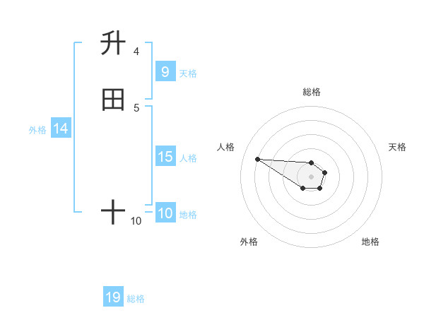 升田 十さんの総格は19画の1点!