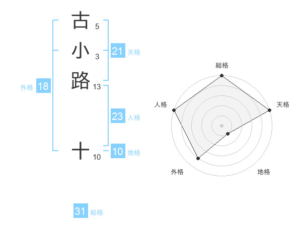 古小路 十さんの総格は31画の5点!