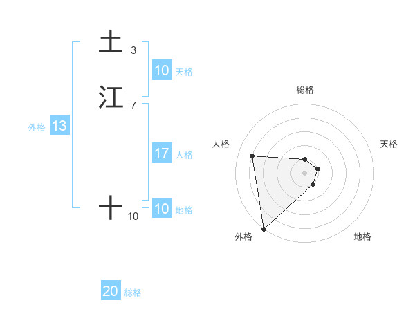 土江 十さんの外格は13画の5点!