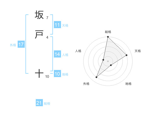 坂戸 十さんの総格は21画の5点!
