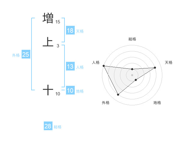 増上 十さんの総格は28画の1点!
