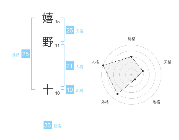 嬉野 十さんの人格は21画の5点!