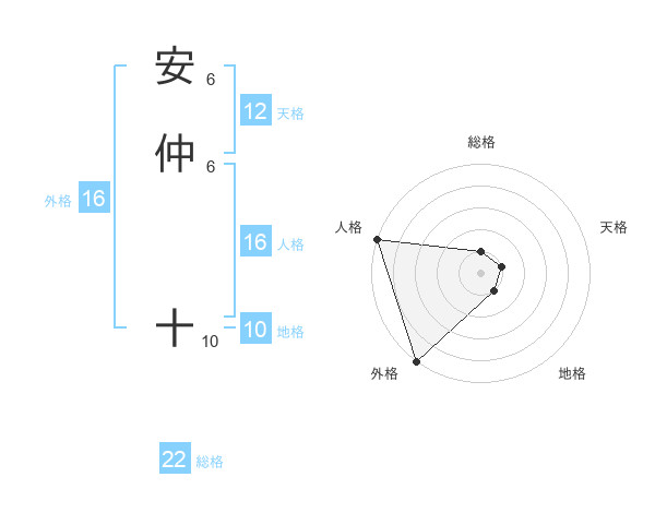 安仲 十さんの外格は16画の5点!