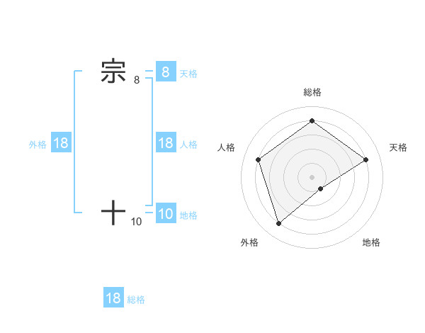 宗 十さんの総格は18画の4点!