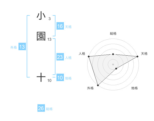 小園 十さんの総格は26画の2点!