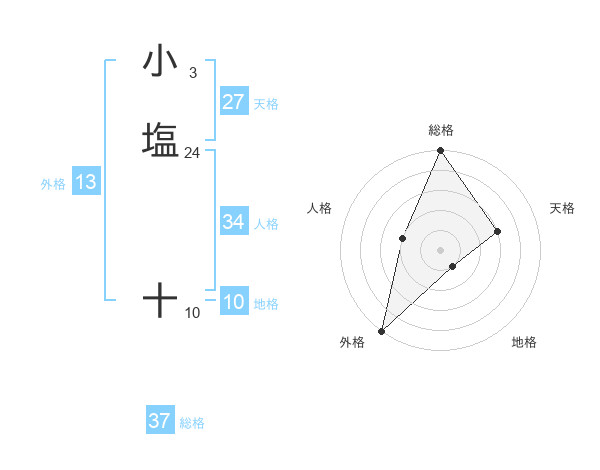 小塩 十さんの総格は37画の5点!