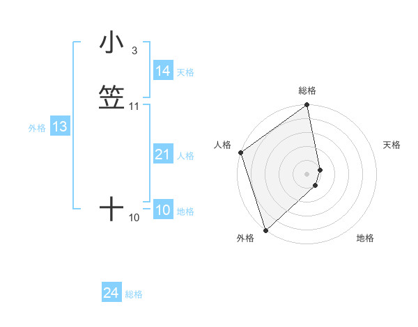 小笠 十さんの外格は13画の5点!