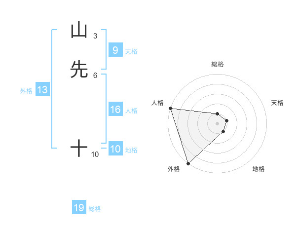 山先 十さんの外格は13画の5点!
