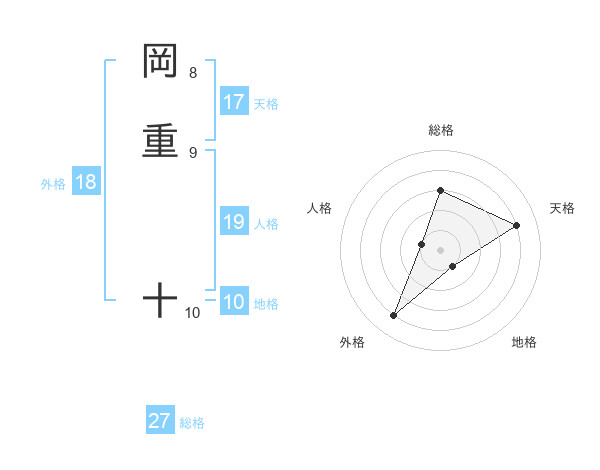 岡重 十さんの総格は27画の3点!
