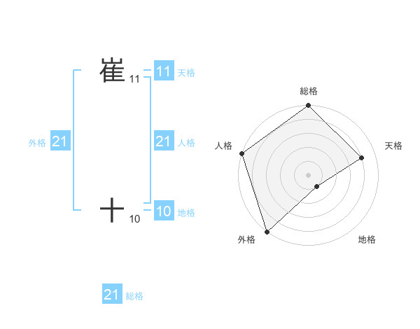 崔 十さんの外格は21画の5点!