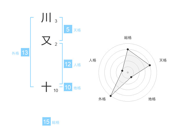 川又 十さんの総格は15画の4点!