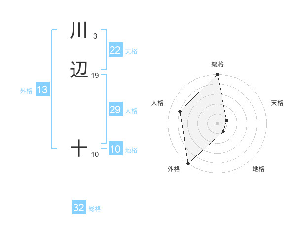 川辺 十さんの外格は13画の5点!