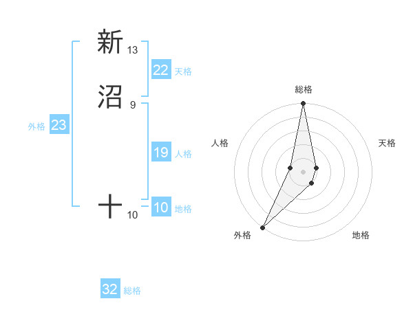新沼 十さんの外格は23画の5点!