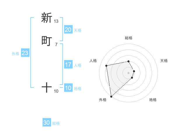 新町 十さんの総格は30画の2点!