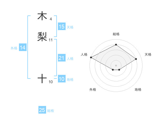 木梨 十さんの総格は25画の4点!