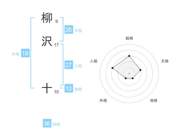 柳沢 十さんの総格は36画の3点!