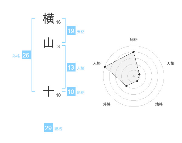 横山 十さんの総格は29画の4点!