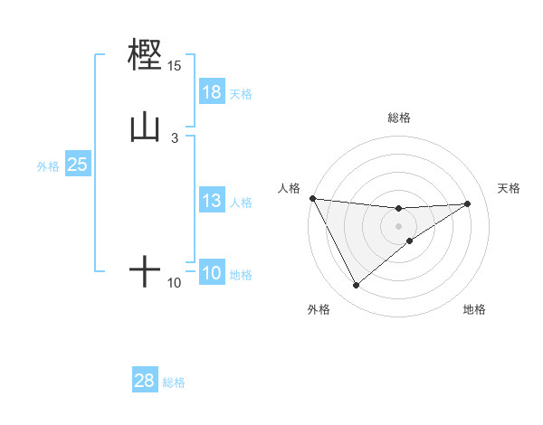 樫山 十さんの天格は18画の4点!