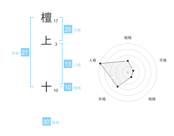 檀上 十さんの総格は30画の2点!