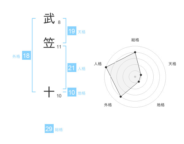 武笠 十さんの総格は29画の4点!