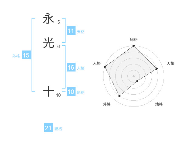 永光 十さんの総格は21画の5点!