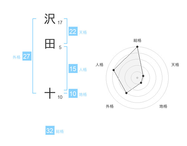 沢田 十さんの総格は32画の5点!