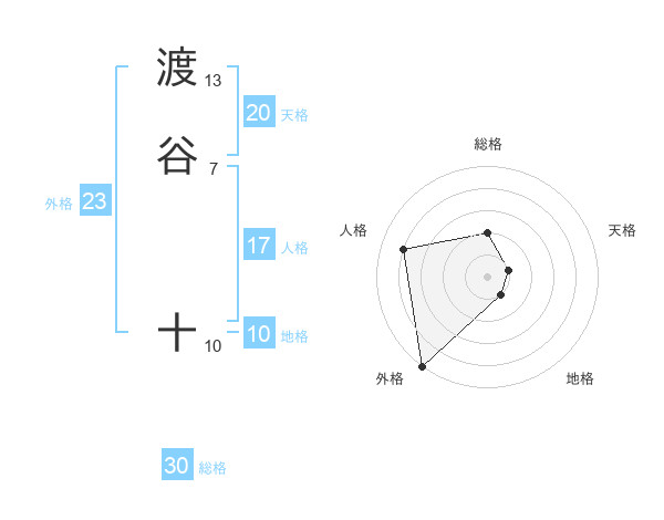 渡谷 十さんの外格は23画の5点!