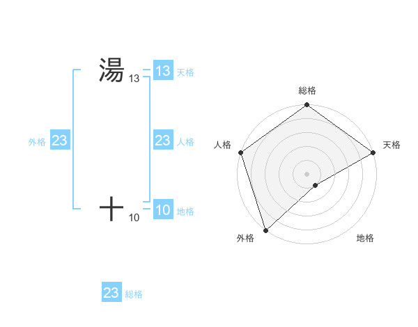 湯 十さんの人格は23画の5点!