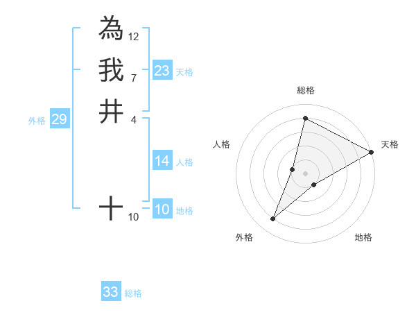 為我井 十さんの天格は23画の5点!