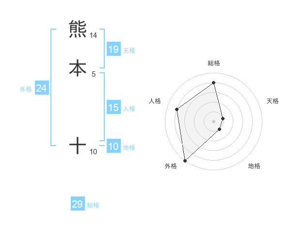 熊本 十さんの総格は29画の4点!