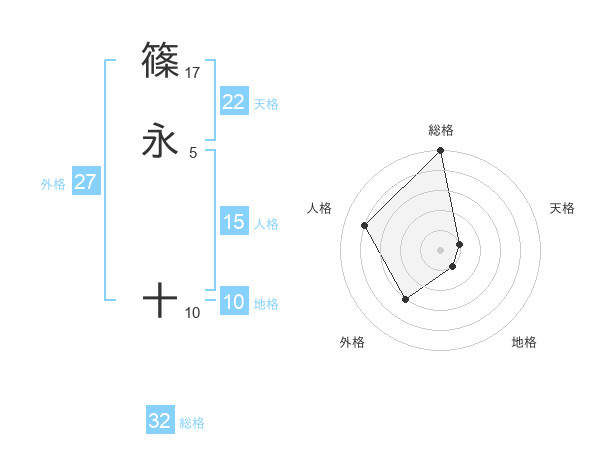 篠永 十さんの天格は22画の1点!