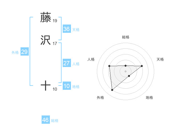 藤沢 十さんの総格は46画の1点!