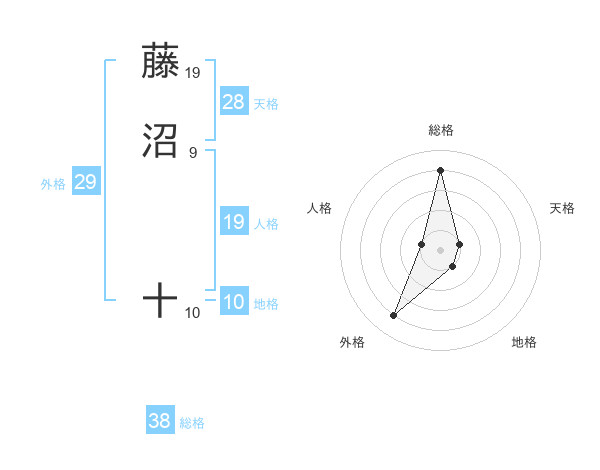 藤沼 十さんの総格は38画の4点!