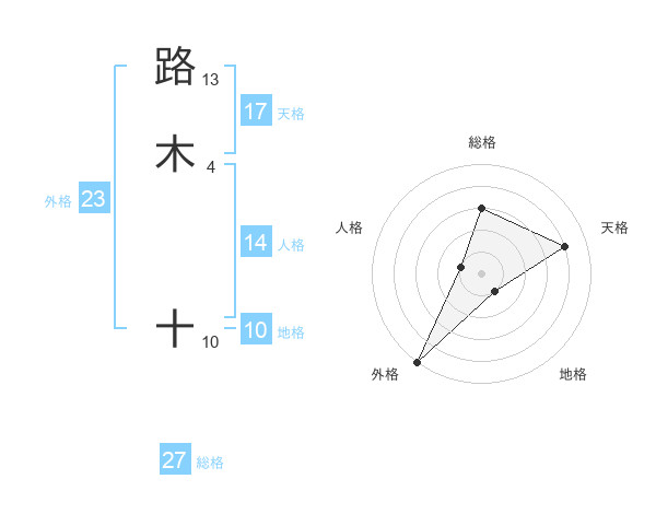 路木 十さんの天格は17画の4点!