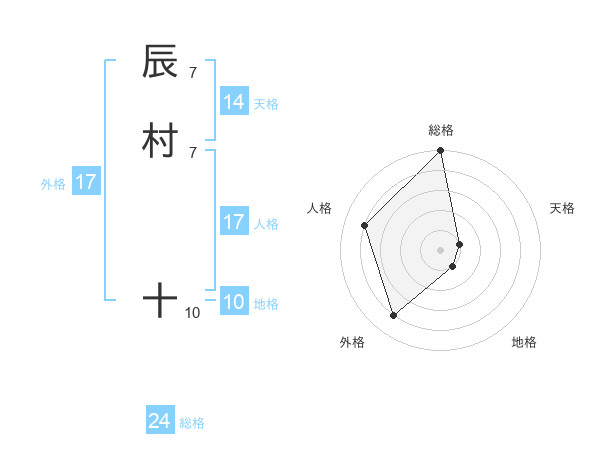 辰村 十さんの外格は17画の4点!