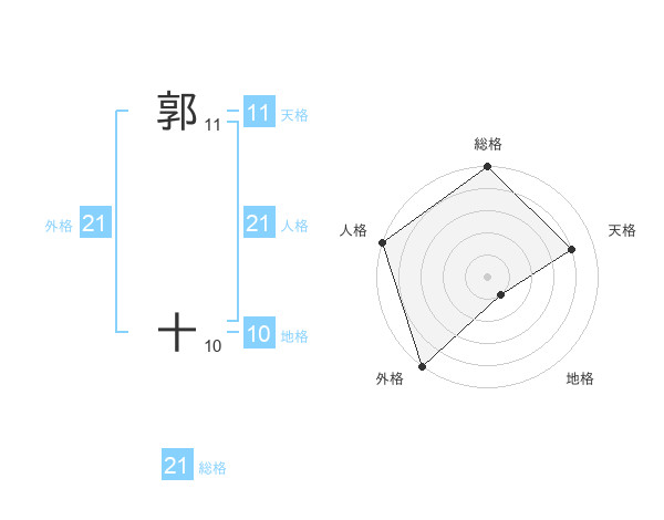 郭 十さんの総格は21画の5点!